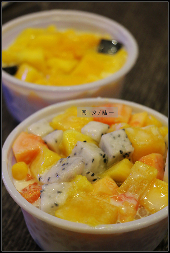 汕头的公交系统不是很好,大部分7点就回场,只有少数班次留到夜间11点,上车必是2元。到宾馆后想来点冰饮,最好能有烧仙草之类的,楼下刚好有这家,貌似还是链锁,在潮州也见过!价位相对便宜,味道相对一般!杂果西米露堂食,芒果西米露打包,结果都没吃完!