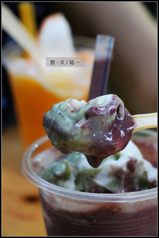 五点左右从汕大撤离,找寻十二中附近的红豆冰沙屋!把车泊在跃进路后开启百度地图,这家地点有点偏,不过在强大的地图面前还是无所遁行!小店面,没有座位,但是摊前大概已经有二十人的队伍!我们决定一人排队一人在隔壁的小店要了一份肠粉等候。这个季节没有草莓冰,小遗憾!要了红豆和芒果的,可以选择要不要加冰淇淋,价位都是五元!正纳闷一家小店为啥就火红了,一勺绵细的红豆沙冰入口,答案似乎也就出来了,真材实料,无他!