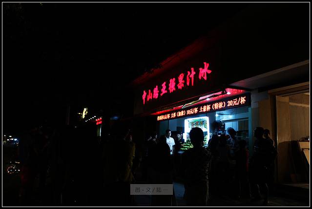 从福合埕总店火锅后公交车到春梅里,发现前头有长长的队伍,凑近了看,才知道是一家叫中山路亚强果汁的店,有普通杯5元,升级10元,土豪杯20元!因为不想再排队久等看到对面也有个小摊就过去了!要了猕猴桃10元,柠檬与杨桃组合5元!发现果汁冰在汕头好像很受欢迎!店家一定会摆上满满的新鲜水果,在你面前加工,其实重点还是真材实料,绝对不是那些果汁粉兑出来能比的!