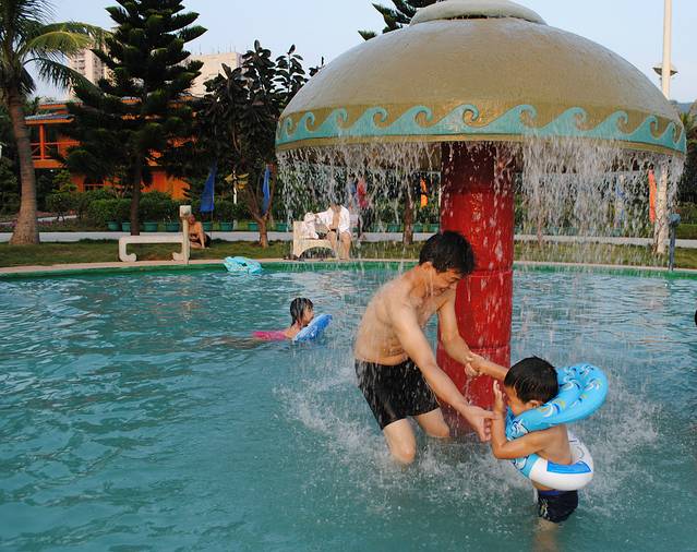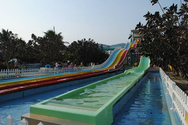 里面有儿童游乐区,泳池。适合成人的娱乐区不多,就2个比较刺激的滑道;