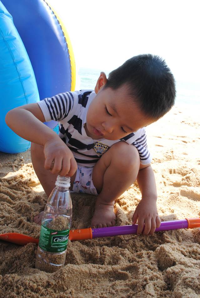 小侄子在酒店前面广场,租了辆电动摇摇车。我坐在蓝波湾沙滩吹吹海风。