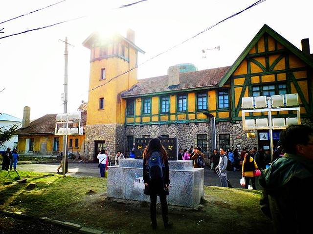 阿尔山火车站,阿尔山火车站建于1937年,是一幢东洋风格的低檐尖顶二层日式建筑,一层外壁周围是用花岗岩堆砌的乱插石墙,楼顶用赭色水泥涂盖。如今整个火车站保存完好仍在使用,是内蒙古的重点文物。