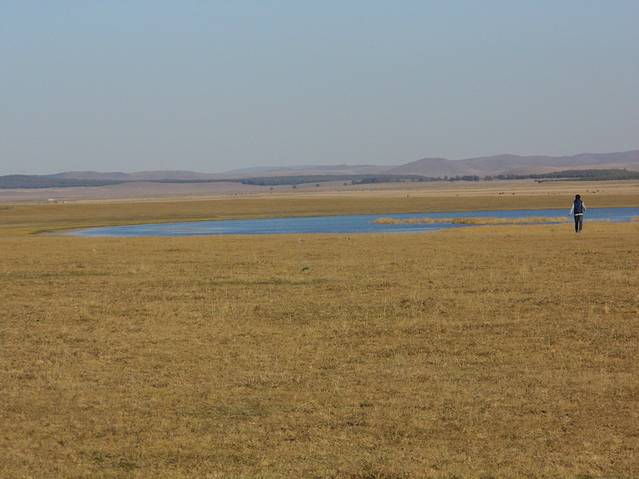这个小湖刚开始看的时候觉得走个十来分钟就到,结果我们走了一个小时。刚到草原谢姐就说你们男孩子刚来到这辽阔的草原难道不想大喊一下。刚下车时,确实有大喊一下的冲动,但只是刚萌生完这个念头就沉静了。并非压抑,只是怕一喊喊不出声,一跑却迈不动脚,一个人站在这片草原上显得是多么的渺小。也许只有骑上了马才能找到驰骋和高歌的快感。