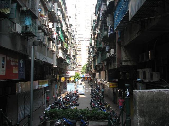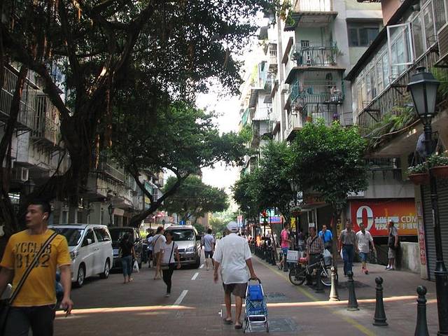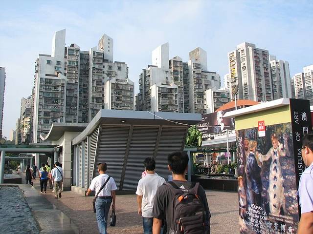 在拱北口岸出关后,走过一段路,到澳门这边的关闸再排队验证一次,终于到了澳门了。 澳门的这边走出去直接就是居民区,楼房很密集。换钱的地方就在这里。可以换港币和澳币,人民币100:125.79澳币。换港币的比率会少一些,有个人看到我们换钱,就告诉我说,最好是换港币,起码到香港还能用。我当时觉得,换澳币更划算一点点,用起来比较接地气,游玩结束后,就觉得没用完的澳币真不好处置,如果是港币,起码以后去香港还是能用到的,相对通用很多。