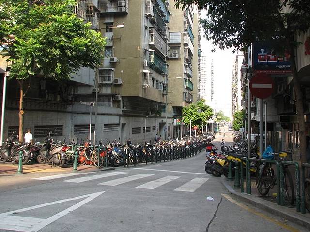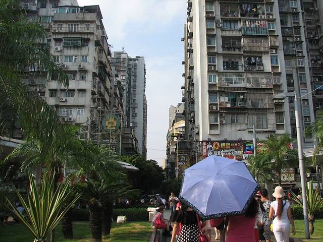 换了澳币之后,我们就到地下停车场去坐公交车,到妈阁庙。本来在澳门有很多免费的“发财车”可以坐的,但是开车时间是9点之后,而且早上排队的人很多,所以导游选择带我们坐公交车,3元人民币或者是3.2元澳币就可以坐了。公交车一路上走过的是澳门的老城区,看到的建筑基本上比较旧的,也很密集,很多家庭的阳台同样用铁条封起来。道路也很窄,一样的停了很多电动车和汽车,但是基本上见不到塞车的现象,这个很让我惊讶。