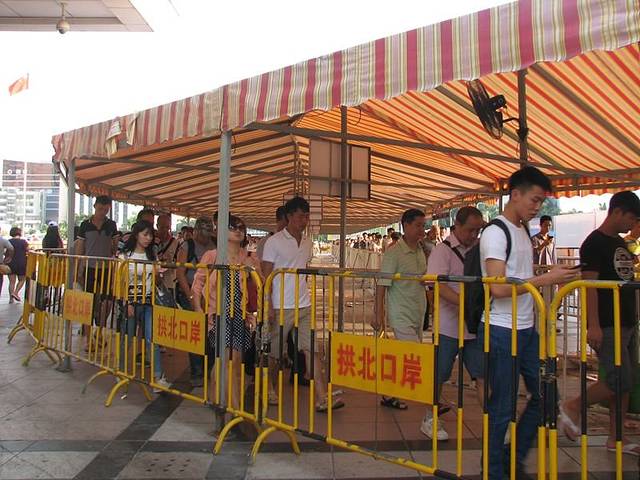 可能是过节期间,我觉得虽然也排了20、30人,但是检验过关的速度很快,实际上只是用了不到半小时的时间过第一关,我们当中有人跟不上,所以我在过了珠海这边的关还等了10多分钟。所以提醒大家,要过关最好几个朋友一进去就马上排队,要不人太多,一下子10多人就在你前面了,一个人过关1分钟也够你等的。