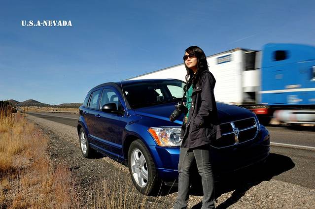 这套照片是去年十一月拍的。和老婆一起去las Vegas开展会,美国人的展会放在赌城开,总有点不教人向善的味道!这是我第三次去美国,却是第一次和老婆一起,以前的两次都是陪着国内的客户,每天坐着旅行社的车不停歇的观光、购物、中餐……这次我们总算有机会真正做一个游者,体会真正的美国。我们从Dollar Rent租了一辆道奇,开始我们的美国行。
