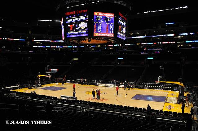 夜色中的Steples Center。