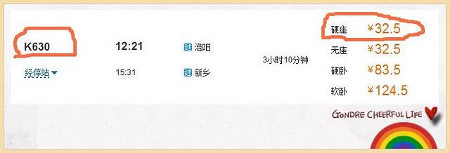 中午从洛阳出发去的新乡,买的硬座,没有晚点,下午3点半左右就到了。