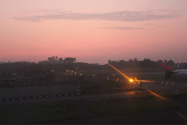 在孟买机场迷糊了3个小时,从国际航站楼转到国内航站楼,开始登机,早上孟买还是粉色的天,6:05分准时起飞。