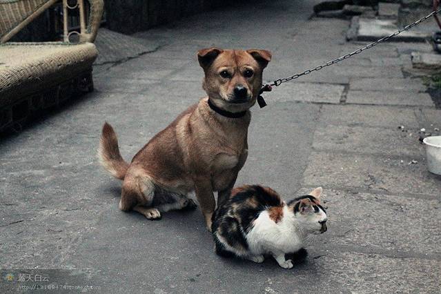从南俊路走到百源路,道路越走越狭窄,周围的小巷子也越来越市井。随便走进一条,看到了很爱心的一幕,喵星人和汪星人吃在一起,睡在一起,汪星人还不许陌生人接近喵星人。