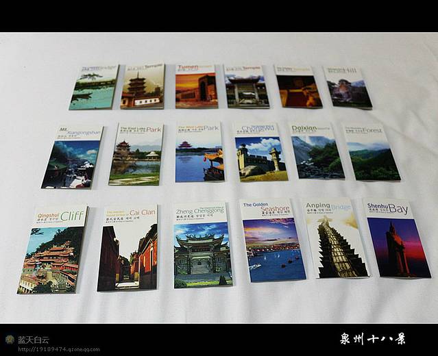 泉州旅游小卡片,蛮有创意的,精选了具有代表性的18个景点,其中的一半在市区,游客按图索骥就可以了,但也有些分布在下辖的郊县中,去这些景点就不是那么方便了。PS:泉州下辖晋江、石狮、南安、惠安、安溪、永春、德化、金门等8个县市(没错,就是金门)