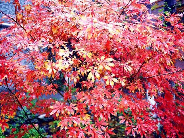 农家乐门前的一树红叶