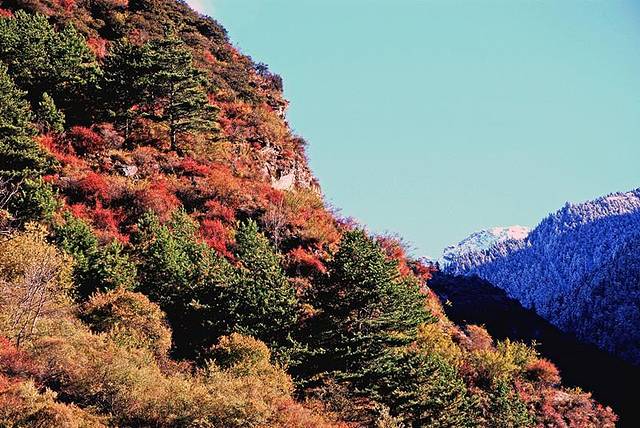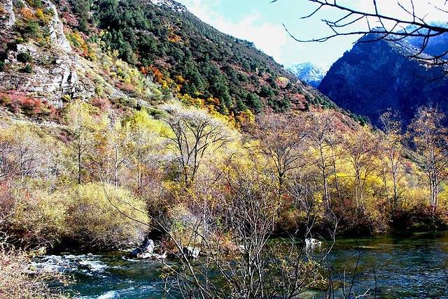 太阳出来,视线变好后看到远处的雪山,问了当地人,说再等一个月松坪沟也会变成那样的,这就意味着我是不是还要来一次啊•••