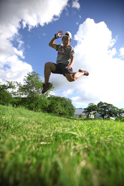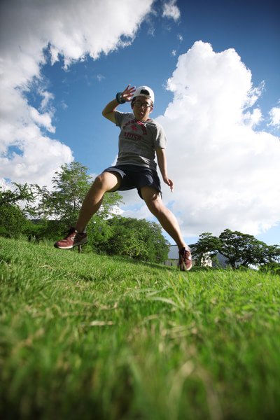 来个跳跃 小腿还挺发达 线条不大好看 太胖了