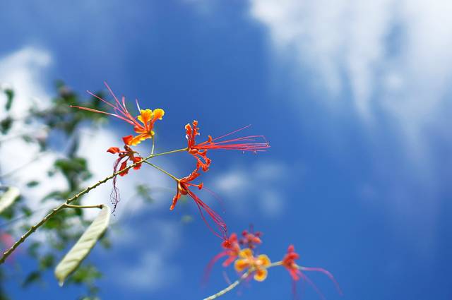 沿途美丽的花 在蓝天白云下显得异常娇艳