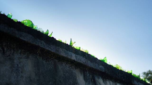 清晨的阳光就是柔和 不知道墙里面是什么地方 如此的做好防护措施