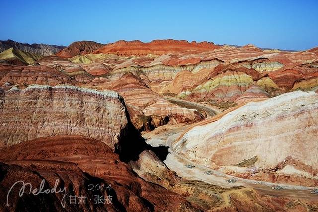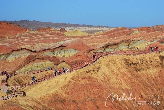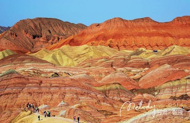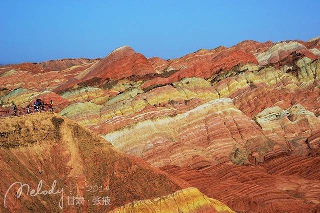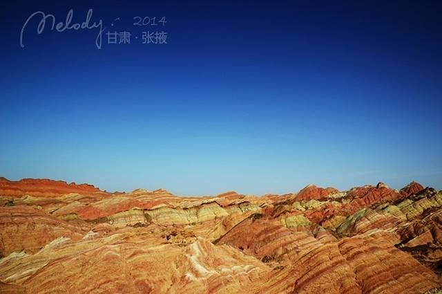张掖祁连山丹霞主要由红色砾石、砂岩和泥岩组成,有明显的干旱、半干旱气候的印迹,以交错层理、四壁陡峭、垂直节理、色彩斑斓而示奇。置身其中,美得使人晕眩,堪称“七彩神仙台”,比敦煌“魔鬼城”的雅丹地貌面积博大,分布广阔,气势磅礴,场面壮观,形态丰富,造型奇特,色彩艳丽,是中国干旱地区最典型的丹霞地貌,举世罕见。(摘自网络)