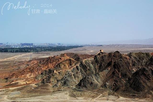 这图取景用意:长城内——是它所保护着的市镇,长城外——是边疆的“崇山峻岭”。