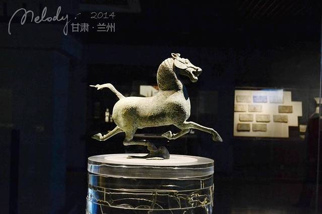 铜奔马在丝路展馆内,为了找到它、能够见到它,我们小小折腾了一番。博物馆17:00闭馆,时已16:30还没找到它,问志愿者后,飞奔到展馆。入口大叔拦住,说闭馆清场了不许进入(当时大概16:40),我们死活哀求都不肯放,正准备带着遗憾走人时,路过出口,前去试试运气,跟出口大叔解释了一番(咱就现在能visit,晚上就要坐火车去敦煌了),大叔放了我们进去,说“就你们俩啊”,我们边感谢边冲进去。铜奔马不愧为国宝级的东东,还得经过几个展厅才能看到,这一路上的展厅安保大叔们见我们被放了进来,只能一一放行,于是咱就是这样一边“非常感谢”一边飞奔。。直至看到它~ 临走前在大堂又碰到好人出口大叔,跟他打了个招呼,旁边的人问大叔认识我们咩,大叔说“哦,看铜奔马的”。再次感谢大叔!