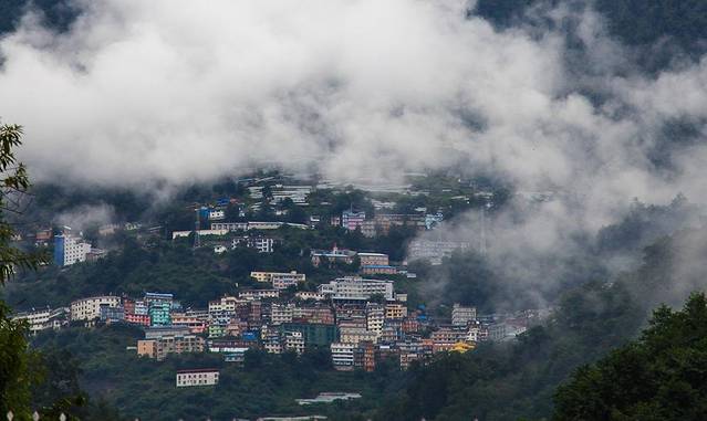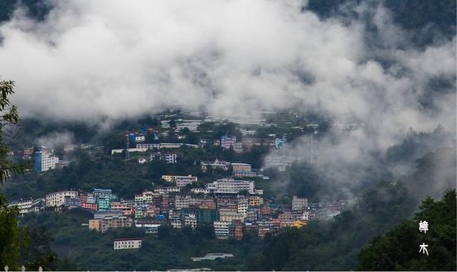 北京时间11点,云雾中的樟木小镇(拍摄于尼泊尔出入境中心)