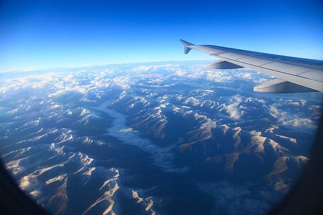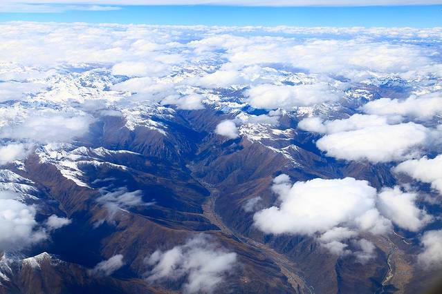从成都到拉萨,从海拔440米的成都向5000米的世界屋脊飞去,川藏的雪山饱览无遗。