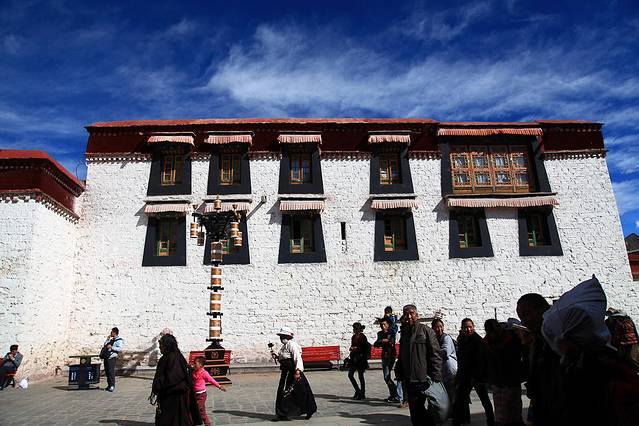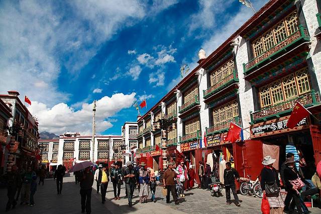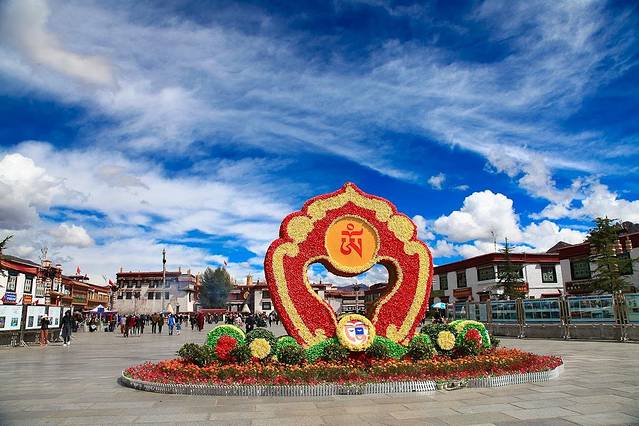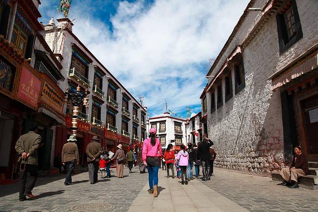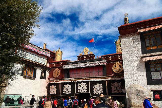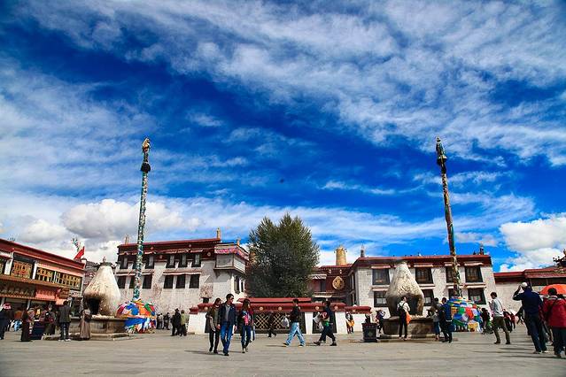 “先有大昭寺,后有拉萨城”,已经有1350多年历史的大昭寺不仅是拉萨更是西藏的中心。这座西藏最古老的寺庙前的石板已被膜拜者用身体磨得透亮磨出了凹痕。寺前的酥油灯房里上千只酥油灯常年点燃,逢重大节日,或初一和十五,大昭寺的门前总要排满捧着酥油的朝拜者,两侧白塔煨起的桑烟缭绕。2000年11月,大昭寺作为布达拉宫的扩展项目被被批准列入联合国世界文化遗产名录。