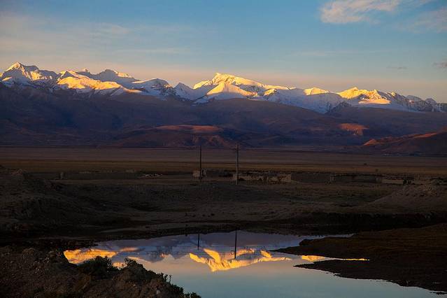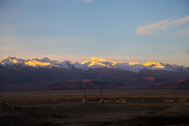 因为我们在定日住了一晚上,第二天7点就出发了才有幸看到如此美丽的雪山日出