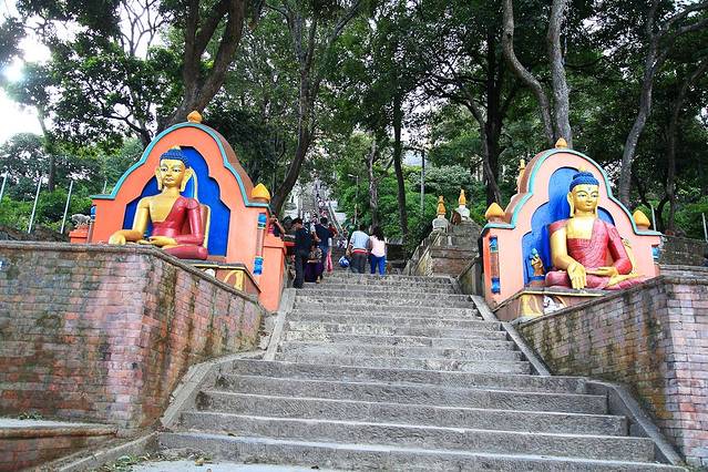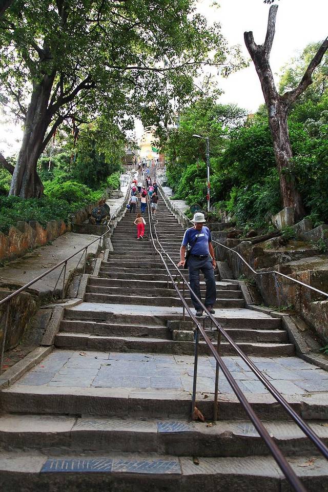 从泰米尔区打车150卢比-200卢比,熟路的人从泰米尔区走路过来需要最少30分钟,如果不熟悉只靠地图走过来,沿途巷子很多,需要多向当地人问路,可能会走1个小时。猴庙有两个入口,打车过来多会在西南边山脚下车,这边的阶梯和缓,沿途小贩比较多,走路过来会直接到东边的入口,从这里上山需要攀爬300多级台阶,但两旁树林掩映,有各种佛教雕像,更有意思,上山小心猴子哦。