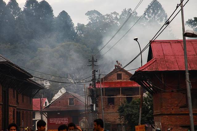 帕斯帕提纳神庙外的巴格马蒂(Bagmati)河畔有六座石造的火葬台,是尼泊尔印度教徒举行露天火葬的场所。逝者的骨灰会被洒入河里,随波而逝。