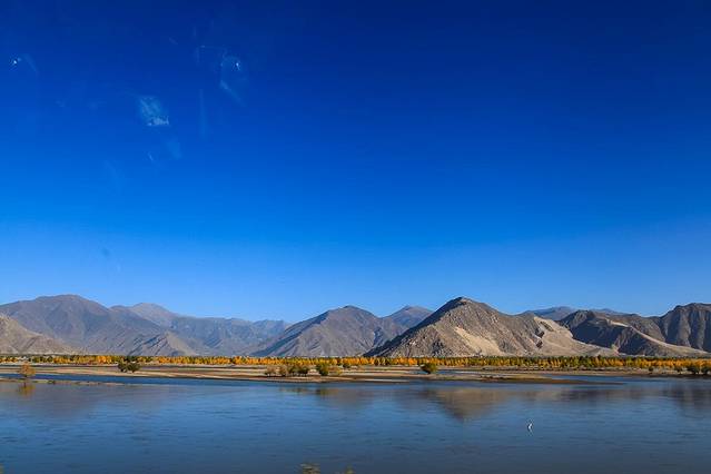 机场旁边的雅鲁藏布江平静温和,一点也不像后面林芝来的那么猛烈