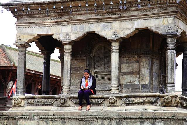 早上继续在巴德岗发呆,中午出发前往帕坦,然后在帕坦杜巴广场的南门的餐馆顶楼吃午餐,俯瞰整个杜巴广场。午餐后买票进入广场,继续发呆。