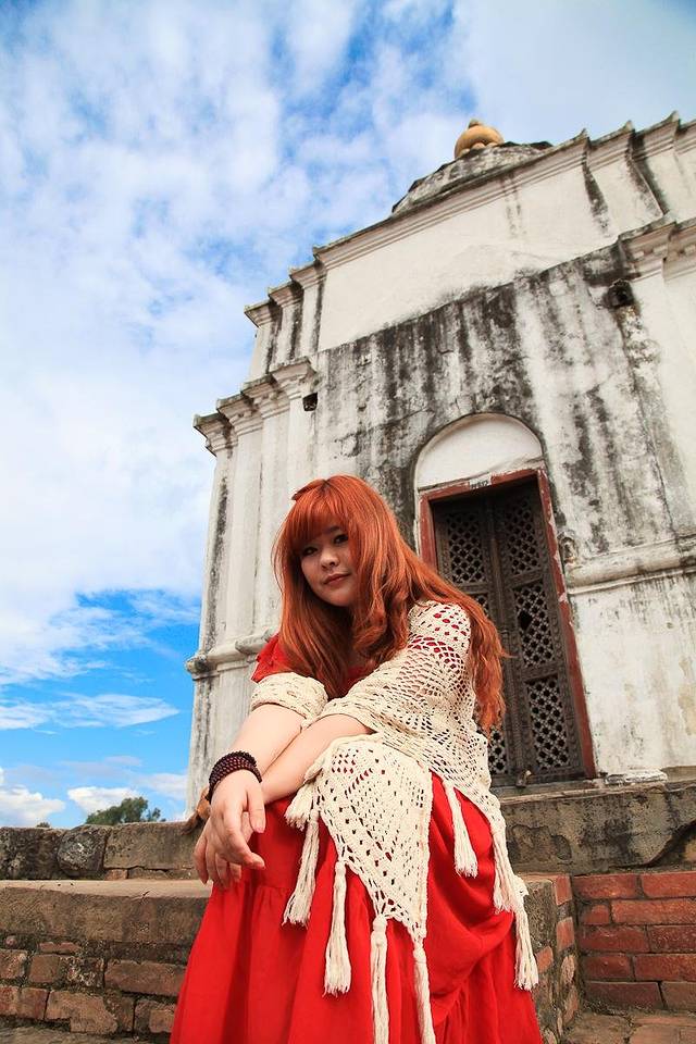 本来我们是带着莎莉来的,门口的保安说不准穿,必须把衣服寄存在门口才让进来,所以只带了围巾进来做道具。