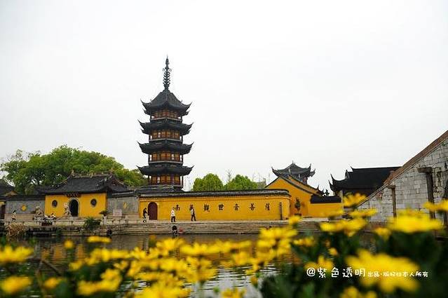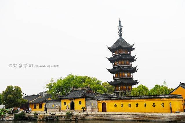 过了一座不知道多少年历史的小石桥,抬起头,明黄色的慈云禅寺就在眼前。慈云寺塔相传建于三国赤乌年间,历经沧桑,历代重修,仍玲珑挺秀。登上最高层,俯视禹迹桥下汩汩流水,远眺阡陌街市,一派锦绣水乡风光尽收眼底。