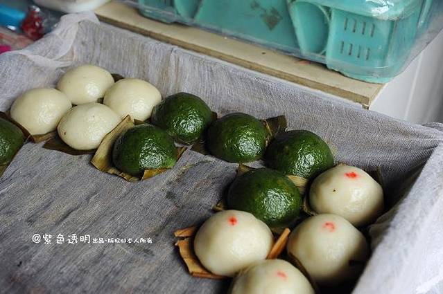 不过,刚出笼的菜花团子却因为太粘而并不好吃,想尝鲜还需耐着性子等上一会,待它冷却至温而不烫时,方才口感最佳。此时,菜花团子的外衣软糯而有韧性,一口下去绵软柔韧,还未来得及回味这美妙的口感,一股浓郁的菜花清香便攻城略地似的扑入了鼻腔。随后独特的菜花馅料更是叫人惊喜连连,菜花头的清爽咸味,融合了竹笋的脆爽生鲜,舌尖隐隐约约绕着一丝丝微辣,口感层次分明,鲜味独特隽永,真是让人不得不拜倒在这位糕团小姐的翠裙之下!