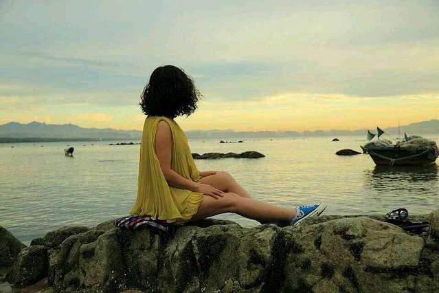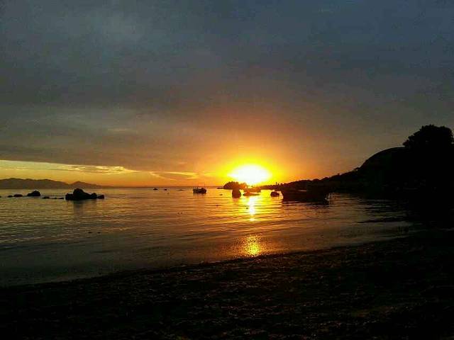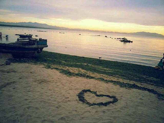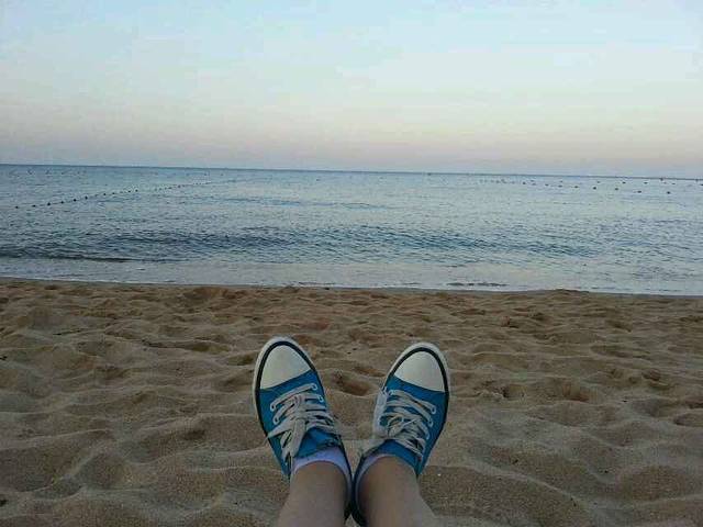 躺在沙滩上,望着纯净的天空,闻着海水的味道,听着海浪的拍击声, 微风拂面、霞光淡淡,闭上眼睛尽情的吸气呼气……惬意 ,没霾的,呵呵……