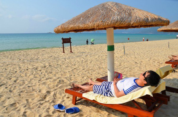 早餐过后,稍做休息,回到屋里带着浴巾,泳衣,防晒霜,太阳镜,小零食准备去沙滩了,今天哪也不去,就是玩水踩沙子晒太阳,据说亚龙湾的沙滩非常好,可以媲美各大著名海湾的海滩,我也没去过著名的海湾,没法做对比,但是这里绝对是国内最好的,沙子真的很细,很舒服。