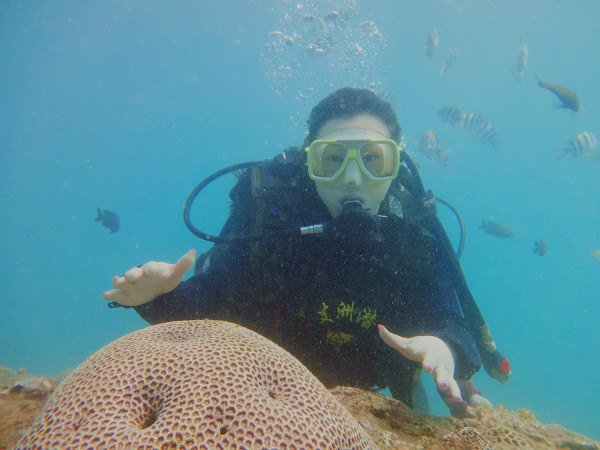 D2:早上七点十分我们准时到达明珠广场跟导游会合,开始我们的一日游。目的地到了,要做游艇去岛上,建议坐在上层,视野好,海风吹着很舒服,到了岛上直奔潜水项目去了,潜水分3种,第一种是岸潜380/人(浅海岸边潜水,30分钟),船潜580/人(坐快艇到珊瑚礁区域,30分钟),精品潜水980/人(深海潜水,60分钟),我选的第二种,还拍了一套潜水照片240/套(电子版发邮箱,大概20张左右,5张打印版)。推荐第二种,因为大部分人第一次潜水会紧张,第二种比较合适,教练一对一,绝对安全。水下的世界我向往了很久了,这次终于可以亲身体验了。