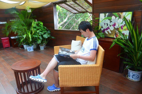 我老公,(*^__^*) 嘻嘻,已经迫不及待的躺下了,很享受的样子啊,估计正心里默想,比基尼美女在哪里,快快来,快快来。。。。