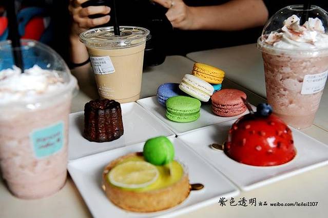买完电话卡,我们在机场内购买大巴车的车票,前往台北市区。初到台北,天气真心没比北京凉快多少,我们决定找家咖啡厅下午茶一下。沿着周边走了走,选了曼咖啡下午茶,室内冷气开的很足,挺舒服的。品尝了马卡龙等甜品,味道都挺好的,是一个愉快的开始。