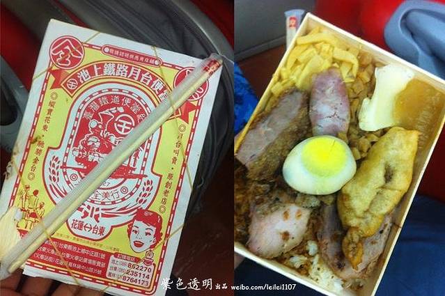 由于晚了一般车,路程的时间多了一小时,一共五个小时。 大家都以为火车上会有餐车卖饭的,结果发现没有哎。我们车子从宜兰驶向台东,路上会经过池上,大家把希望都寄托给池上便当了。但算了一下到池上,大概要晚上9点了,估计站台上没有卖便当的了,幸好有朋友给力的帮忙,查到了池上便当的电话,我们打了电话,告诉人家定几盒饭,在几号车厢,到站人家就在展台上等我们。 坐了5个小时的火车,饿的前心贴后背了。用了不到十分钟就吃完了。池上便当有名,源于池上大米好,因为土壤及水质的关系,号称全台湾最棒的米,便当一份70元台币。