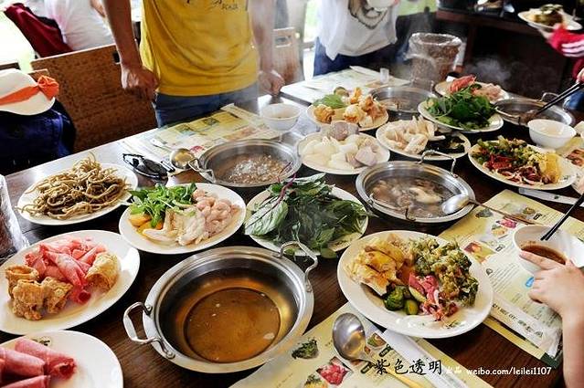 从布侬部落出来,到原生应用植物园吃养生火锅。台东难得一见以牧场为景的餐厅,牧场餐厅内的健康养生“汆烫锅”有多种没吃过的有机药草、清爽的药膳汤头、独家药草酱料等。