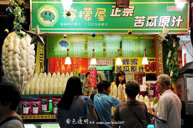 逛完故宫,乘公交车前往附近的士林夜市。士林夜市这里就不多费篇幅了,只给一句总结性评论,不去遗憾,去了更遗憾。一行人对士林夜市都非常遗憾,没有逛尽兴,转战酒店附近的西门町夜市。俗话说不到台北市,不知道台湾的繁华;不到西门町,不知道台北的热闹”。西门町夜市相对其他夜市来说,年轻人更多一些,这里卖的最火的应该算是苦瓜水了。这里的苦瓜跟大陆的不同,是白色的,而且个头大好几倍。潘潘猫同学买了一杯,兴高采烈的跑过来,让大家尝尝,说特别好喝,结果分分中招,苦的是呲牙咧嘴的。
