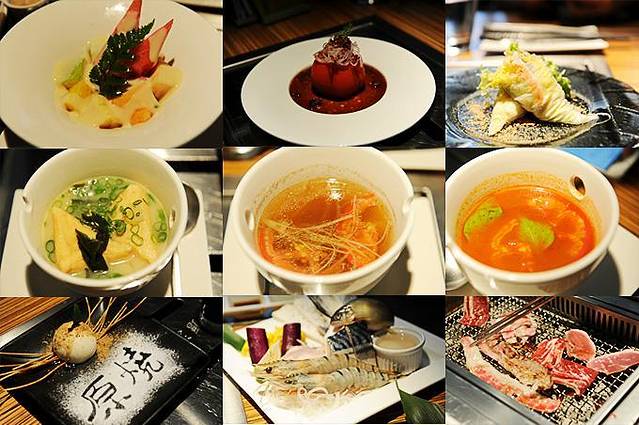 艺奇餐厅这里是按照套餐的形式来点单的,每人768元新台币,可享用从汤物、先付(沙拉)、小品、食事(主食)、刺身、柠檬冰霜、强肴(主菜)、甜品、饮料,这九款食物。