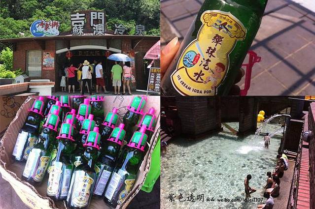然后去泡苏澳冷泉,大热天最适合来苏澳泡冷泉,水温低于22度。它的神奇之处在于下水时觉得冷,泡久了便会慢慢发热。池底会冒出小气泡,像泡在碳酸汽水里。泡完身体凉凉的很舒服。泡完冷泉喝特色的弹珠汽水,汽水瓶口有颗弹珠,按下后,汽水会喷出,弹珠汽水就是用苏澳冷泉做的。
