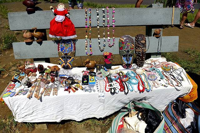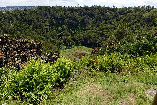 毛里求斯有的不光是海滨风光,它还有别具一格的陆路景象,毛里求斯南部之旅,看的就是它的多元纷呈,同时这里也是个火山岛,来这里一定要看看鹿洞火山口(Trou aux Cerfs)。说起火山,印象中就是日本富士山的模样,从箱根远远地望去,光秃秃的,只能作个背景。然而毛里求斯的火山与想象中的不一样,这个火山口被葱郁的树木遮掩着,如果不经指点,你也许会错过这个奇观。下了车,来到路边,探下身俯视,你会发现火山口也可以如此温馨,那底下积着一滩湖水,面积不大,近乎干涸。而同样吸引我的,除了当地特色的水果还有精美小饰品。