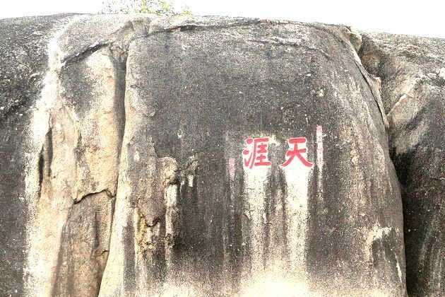 看完了天涯海角的远景,来细细浏览这里的各色名石。“天涯”石,也叫“平安石”。是景区的五大名石之一。“天涯”石属于巨大的花岗岩体,是明显的球状海蚀风化和节理发育,高10余米,周长约 60米,从高处看,绿树掩映下,依山傍海的“天涯”石圆中见方,方中呈圆,独占海湾一角,已有亿万年的历史,可谓“坚如磐石”。相传它是南海上亿年“石祖”,被派镇守南海,祈求南海风平浪静,保佑众生四季平安。每年都有来自五湖四海的游客在“平安石”前祈福平安。
