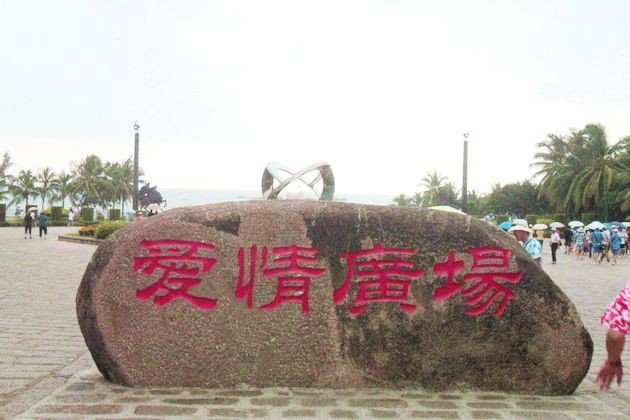 进入园区后步行通过的这条路叫“爱情大道”,宽敞平坦的道路犹如大家今后顺利的爱情和稳定的感情。前面的广场是我们的爱情广场,那里碧海蓝天,风景如画,预示着我们对爱情的美好憧憬。爱情大道尽头的广场叫爱情广场。2008年11月6日北京奥运会体操全能冠军杨威与杨云在这里举行了轰动全国,亿万瞩目的浪漫婚礼。矗立的这块巨石,一面镌刻“爱情广场”另一面镌刻“永结同心”。在爱情广场的左右,分别矗立两块石刻,分别是“爱”字和杨威杨云的爱情宣言“情定天涯海角,相爱白头到老”。这些吉祥的石刻围绕着爱情广场中央的天涯海角星与海面心形的“爱情石”遥相呼应,取“日月星辰,交相辉映,情定天涯,白头到老”之意。