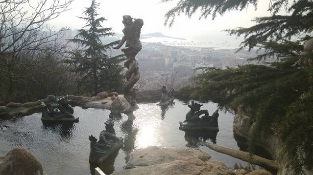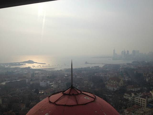 刚刚提及到信号山在迎宾馆的旁边,也是13元/人,走到这里觉得学生证真的好重要,门票到处都可以半价啊。。。囧rz。。信号山山顶有个类似旋转餐厅的地方,是提供给摄影发烧友的,而且这里还真能看到青岛全景哦。哥德式建筑,小小的人群,还有那金黄色的阳光散在上面的大海。。。。很是写意。。