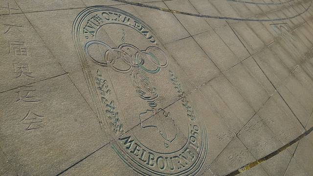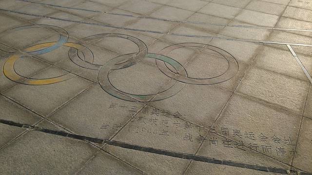 步入广场中央,巨大的奥运火炬树立在那里,地面上还有各界奥运会的LOGO镶嵌在地上!
